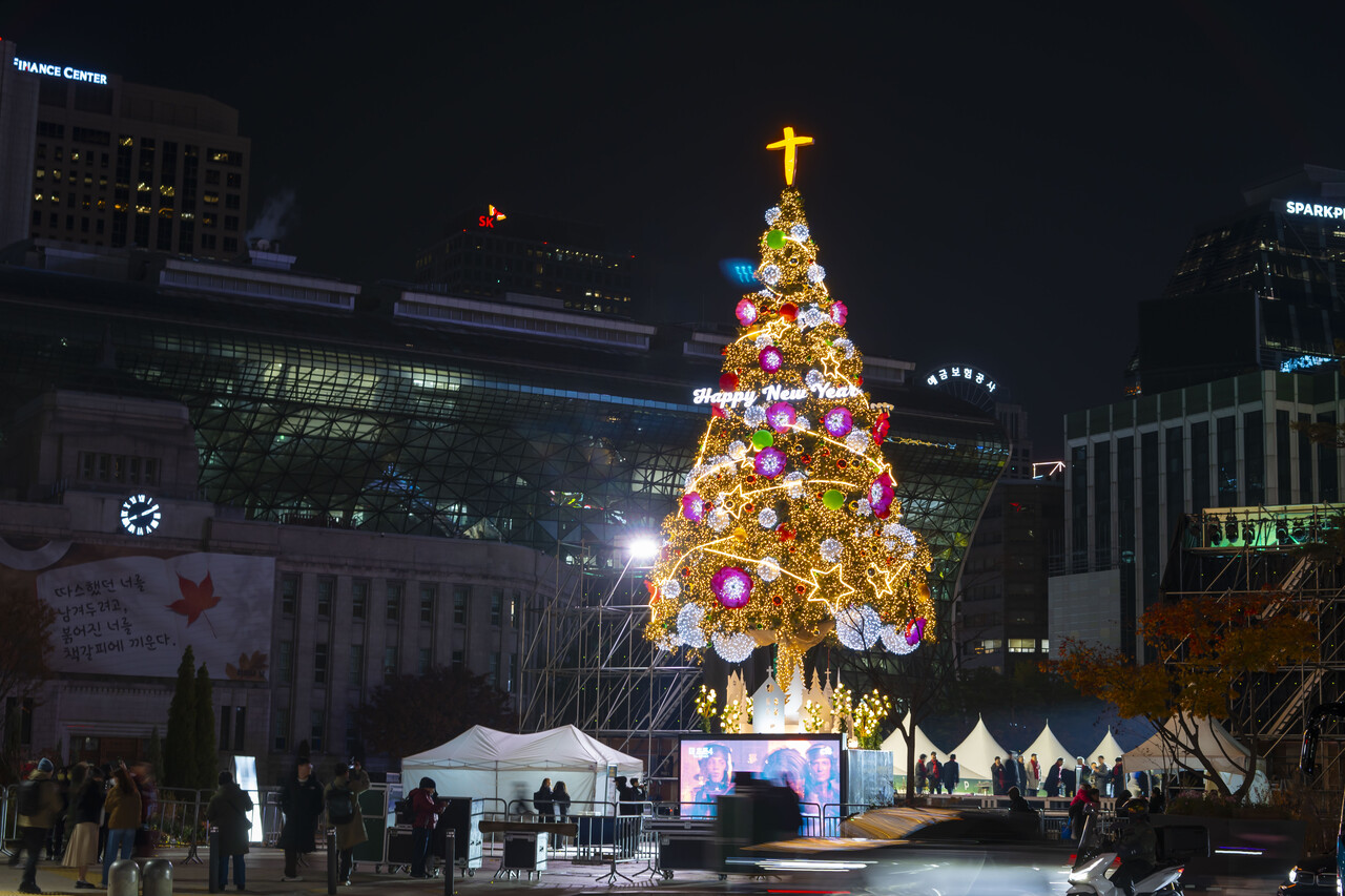 서울광장에 성탄트리가 점등되어 아기 예수 탄생의 복된 소식을 온누리에 전했다.