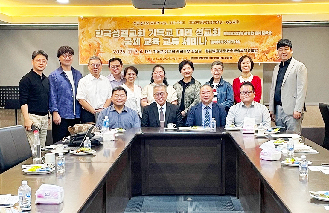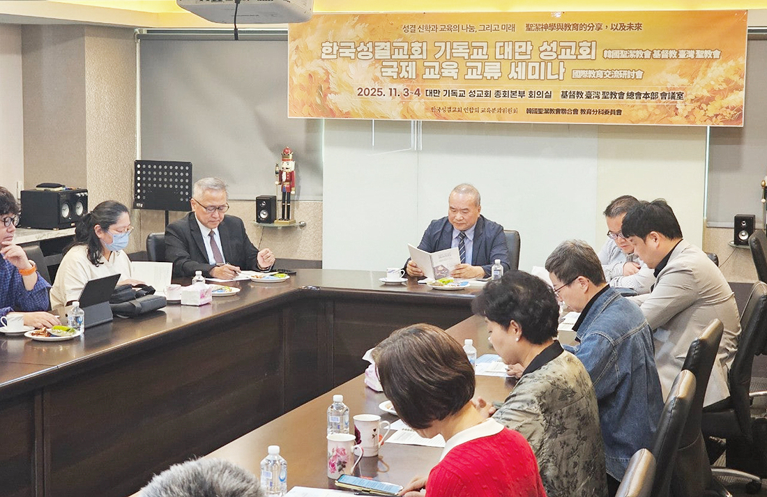 한국성결교회연합회(대표회장 홍사진 목사, 이하 한성연) 교육분과는 이달 초 기독교대만성교회(基督敎臺灣聖敎會)와 ‘국제교육 교류 세미나’를 대만현지 총회본부 회의실에서 갖고, 양국 성결교회의 교육 현황을 공유하는 한편 향후 발전 방향을 논의했다.